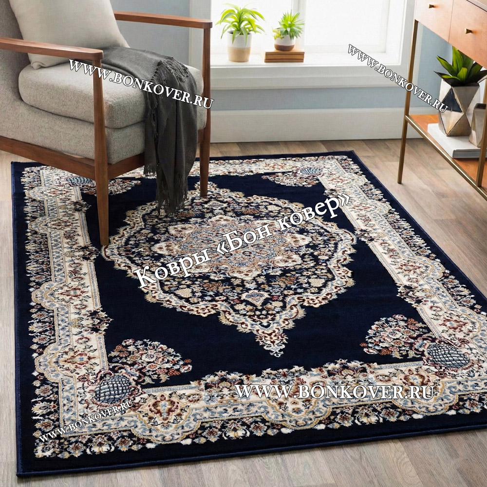 Долго искали смотрели на разных сайтах , в итоге ваш ковер приглянулся больше всего . Доставили в рулоне на следующий день , оплатили при получении . Идеальный вариант , цвет темно синий с переливом - рисунок очень выйгрышно смотрится !